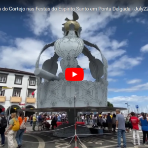 Matthew com Imagens do Cortejo nas Festas do Espirito Santo em Ponta Delgada, Sao Miguel.